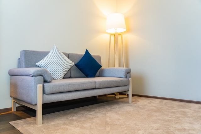 Sofá amarillo con Lámpra