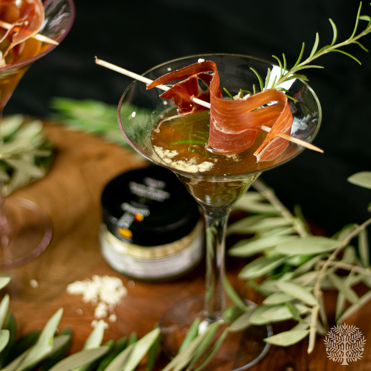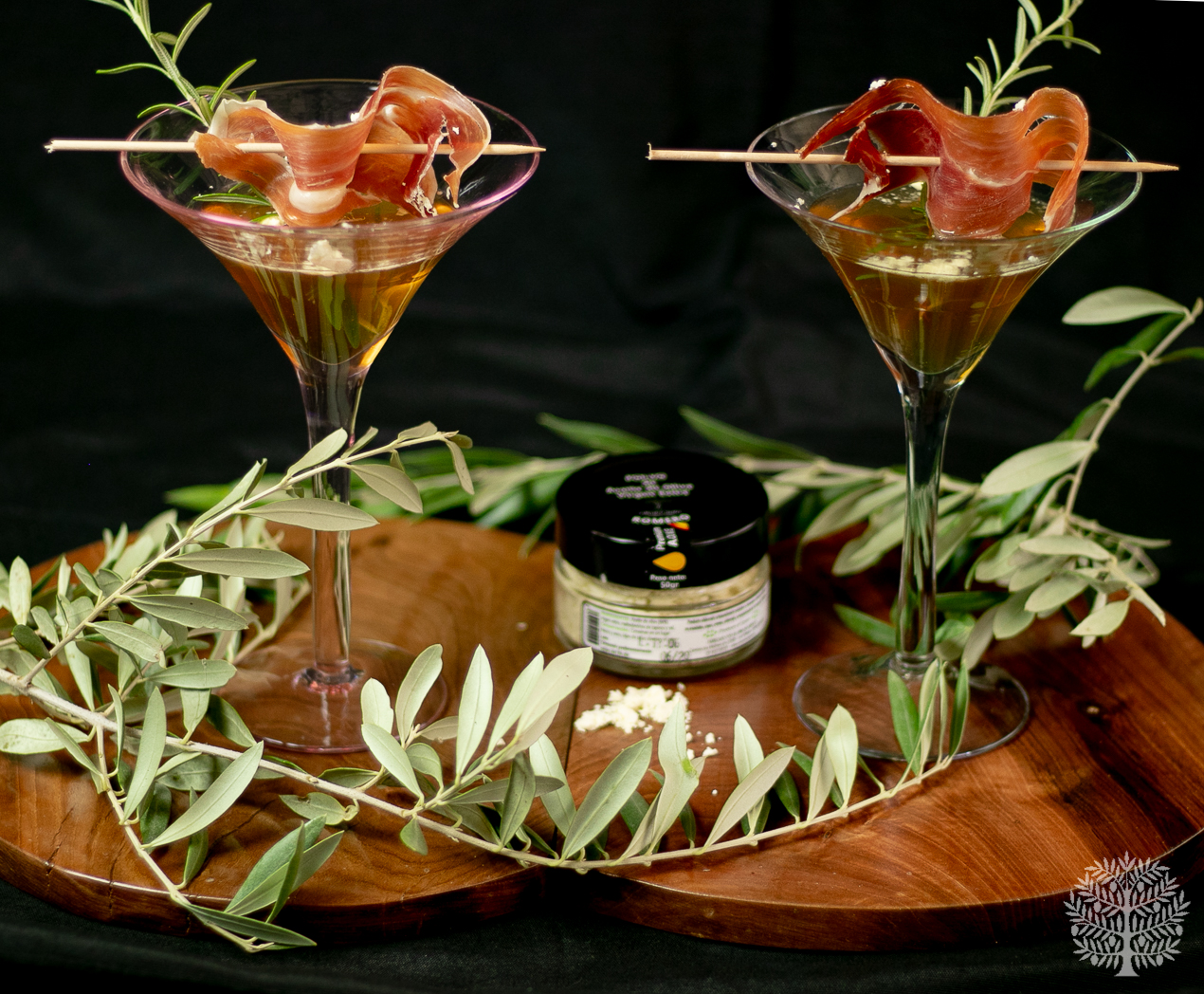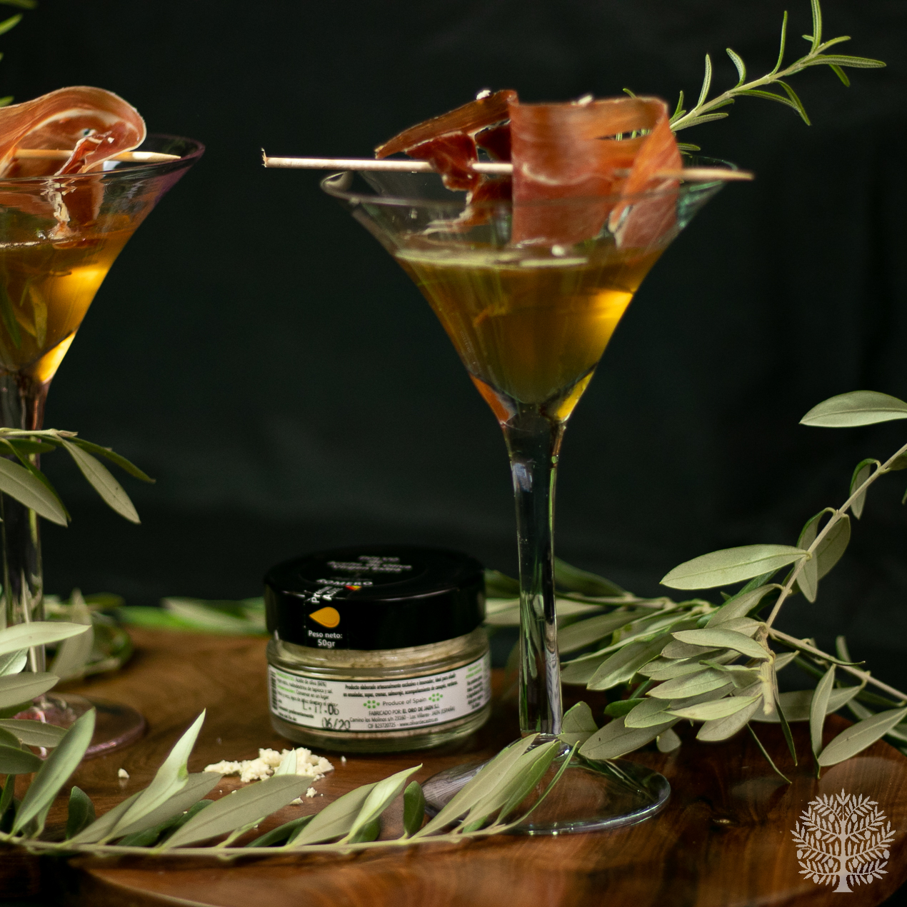Cóctel de Jerez, con jamón y polvo de AOVE